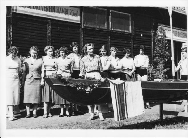 Ab Januar 1939 wurden wir dann die selbständige “Sportvereinigung Dresdenia - Frauenabteilung Hamburg”. Ab sofort hatten auch weibliche Nicht-Banker die Möglichkeit, aufgenommen zu werden. Das Bootshaus “Alsterlust” war schließlich so altersschwach, dass zunächst ein Umzug zum “Allgemeinen Alster-Club” und 1940 dann ins Bootshaus Schwanenwik erfolgte.